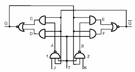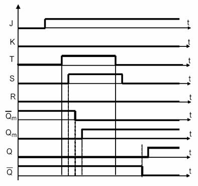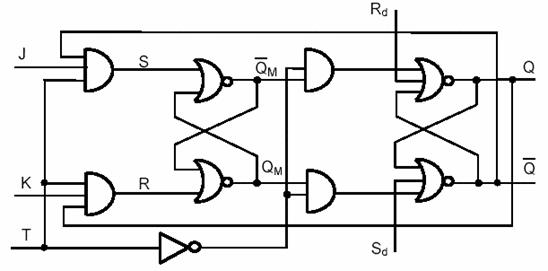 Pentru T = 0 porţile de intrare sunt blocate iar pentru T = 1 se obţine funcţionarea asincronă.