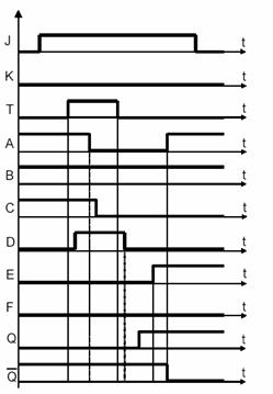 Funcţionarea circuitului se bazează pe timpii de propagare (tp1=tp2≥4tp) ai porţilor 1 şi 2. Dacă nu este îndeplinită această condiţie, semnalul C revine în “1” după tp1 + tp de la frontul negativ al ceasului T, ceea ce ar determina revenirea în “0” a lui Q.